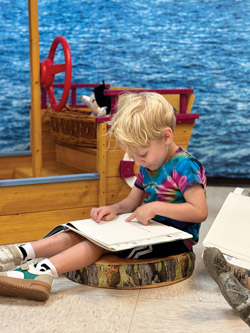 One of the most magical features of the school is its literacy immersion room, located in the elementary school next door and open to children ages three through eight. The room is unlike any other—it transforms with changing backdrops that bring classical tales and folktales to life.