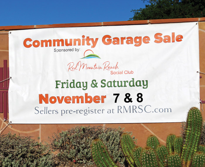 The Red Mountain Ranch Social Club is hosting its annual Garage Sale on Friday and Saturday, Nov. 7 and 8. Shoppers from around the area are welcome to explore the neighborhood and find great bargains!