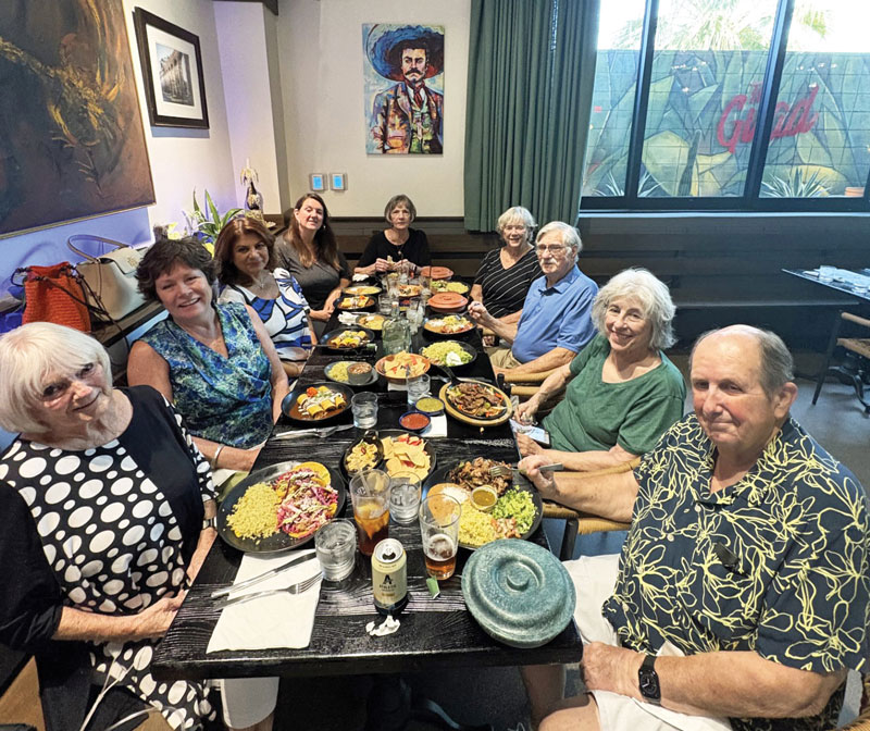 Our ladies enjoyed monthly luncheons. On June 17, we visited Shaanxi Gardens in Mesa, a popular restaurant serving northwest Chinese cuisine. On July 15, we went to Pyro in Phoenix, where we selected entrées from an intriguing menu. In August, we enjoyed brunch/ lunch at Bits of Both in Mesa, delighting in a casual and friendly atmosphere.